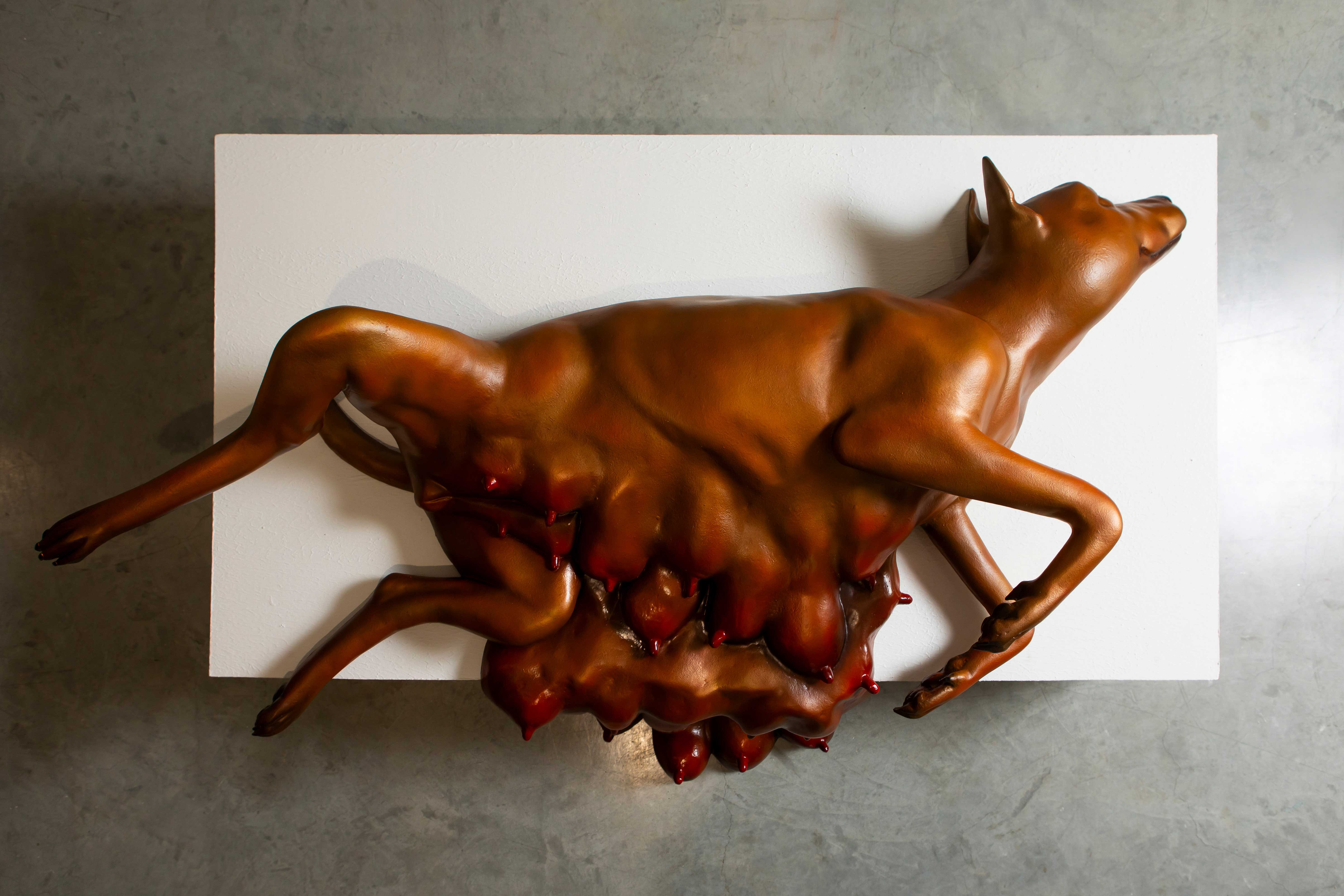 In creating this piece of art, I was inspired by the postures of dogs, which are considered to be human's true friends across species. In creating this art, I aimed to study the appearance and gestures of dogs, which I would use as inspiration for creating sculptures. It is like freezing a moment in a posture, making it still, captivating, interesting, and immersing oneself in the pose being displayed. I emphasize the dog's posture to create an emotion similar to overlapping movements.