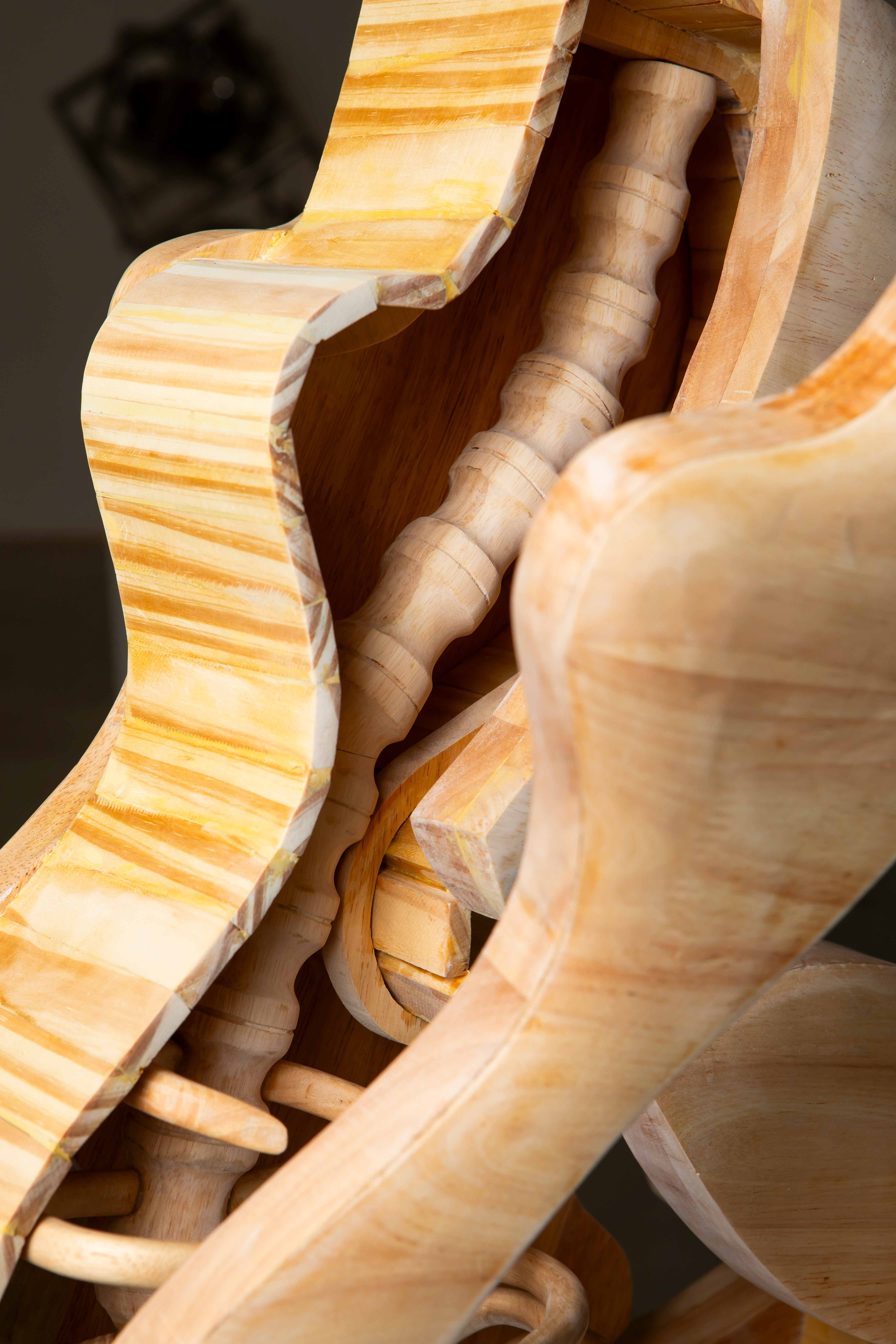 This work is a creation of shapes that have an outside and an inside. The outside shapes convey the enjoyment that has a main structure of bones hidden inside, in order to be aware and remind of life that is indulging in happiness until forgetting that there is death hidden inside.