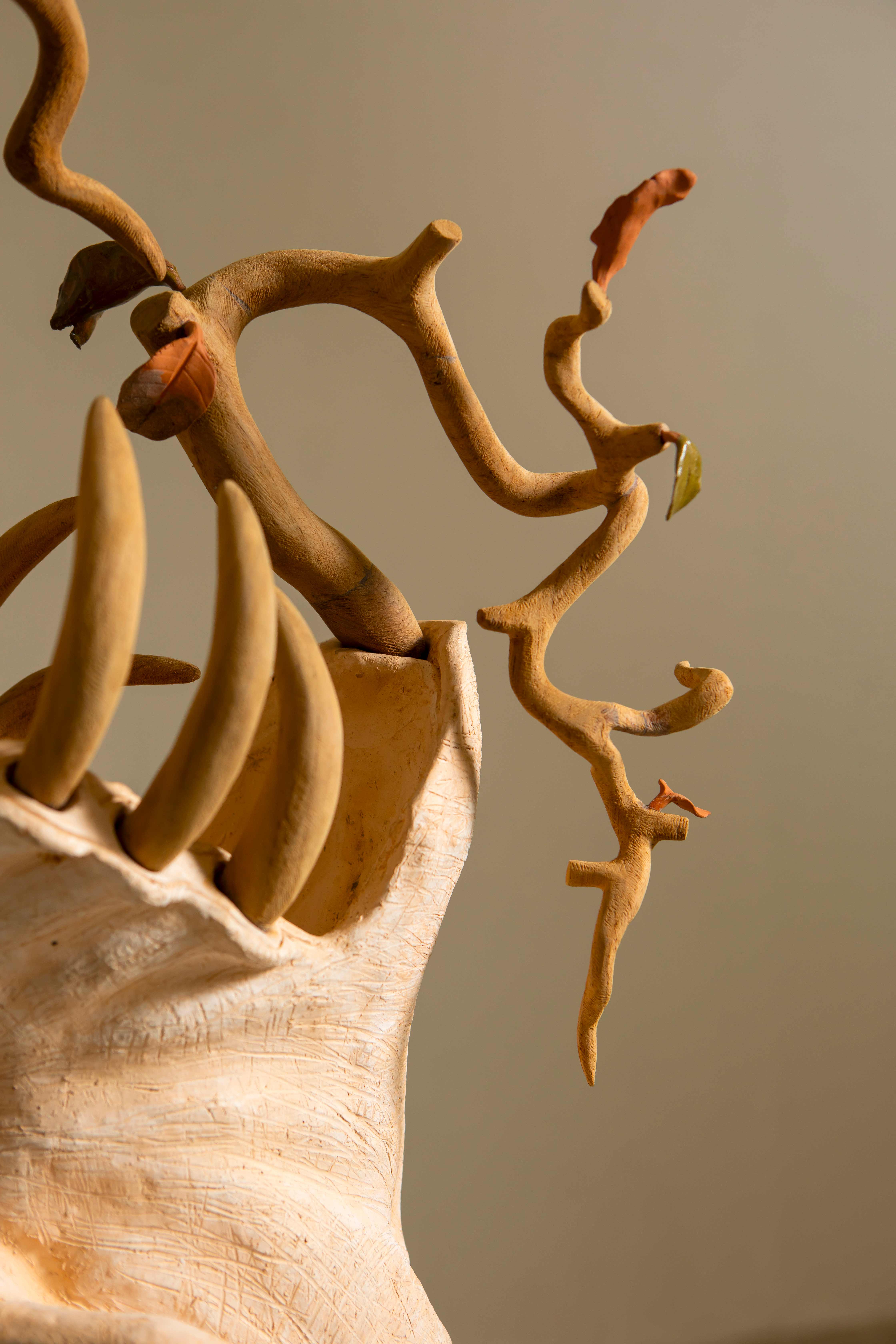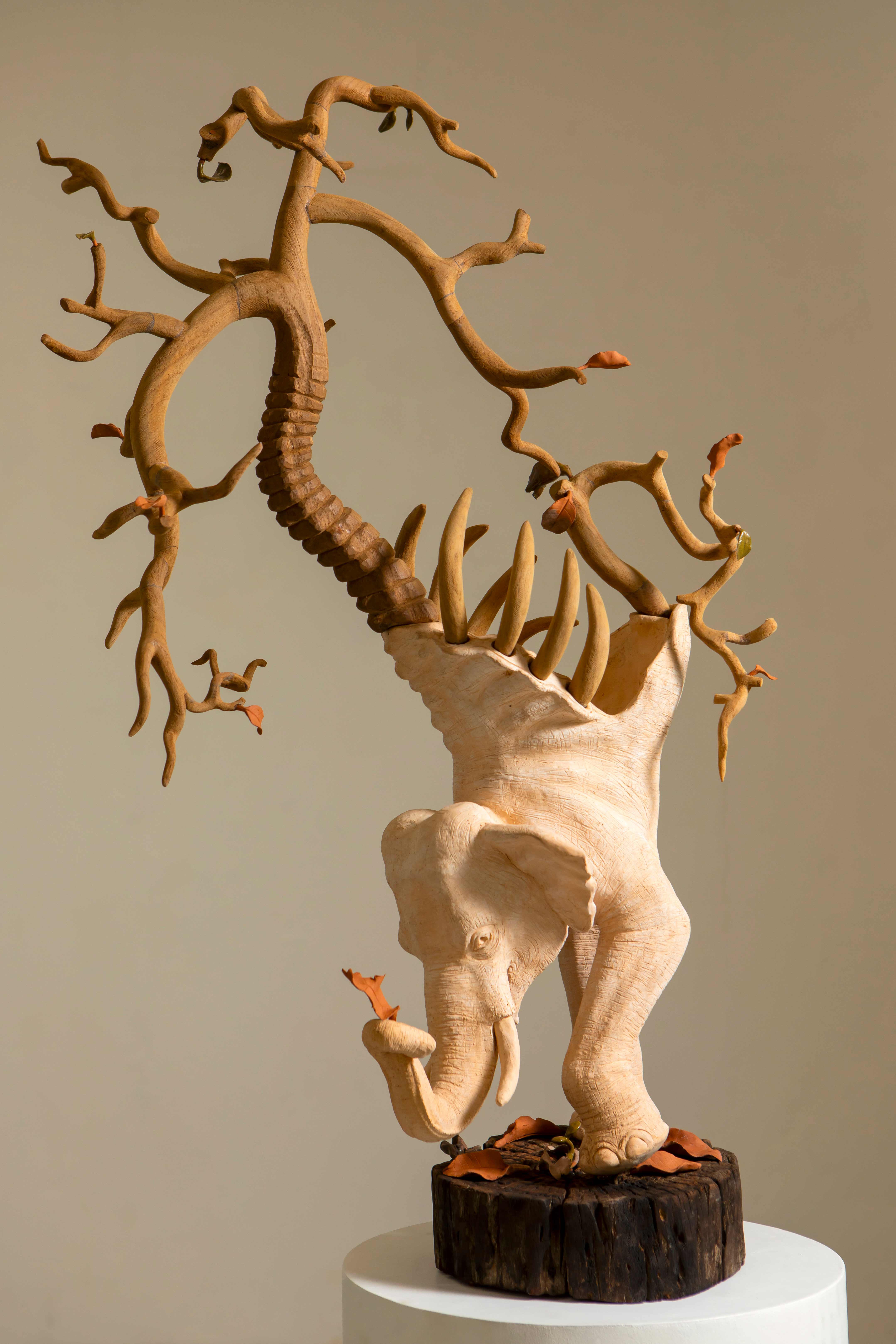 From the direct experience of having to struggle and fight to survive in society to lead oneself to the destination of life, this piece conveys an imaginary image that comes from the subconscious, conveying the beauty of nature that comes from the process of change, fusion, and adaptation to lead oneself to a new life. It reflects that every life must go through adaptation to move towards a new destination, which is true beauty and the highest goal of existence
